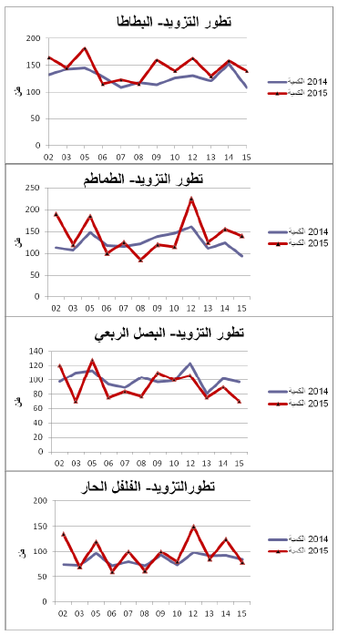 الطماطم : زيادة نسبية في التزويد مقارنة بنفس الفترة من سنة 2014 ويقدر مؤشر الكميات بـ 113.