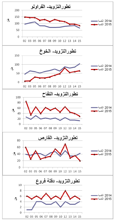 الفراولو: زيادة في التزويد مقارنة بنفس الفترة من سنة 2014 ويقدر مؤشر الكميات بـ 145.