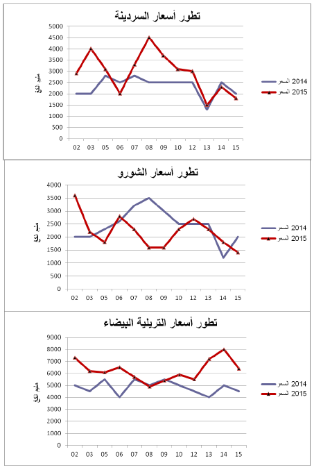 - ارتفاع نسبي في الأسعار بالنسبة للسردينة (+21%) والتريلية البيضاء (+25%).