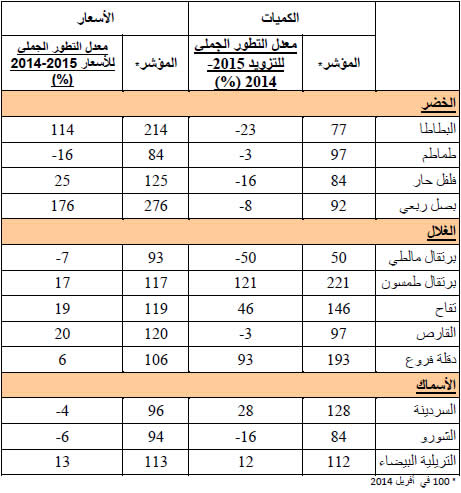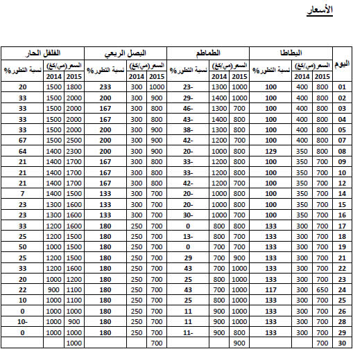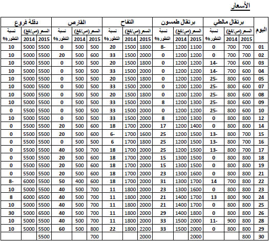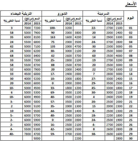 الشورو : انخفاض نسبي في الأسعار مقارنة بنفس الفترة لسنة 2014 ويقدر مؤشر الأسعار بـ94.