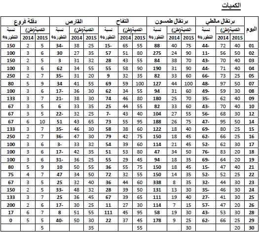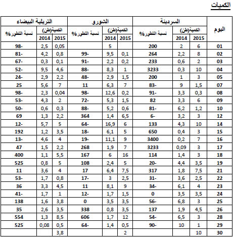 القارص: استقرار نسبي في التزويد مقارنة بنفس الفترة من سنة 2014 ويقدر مؤشر الكميات بـ97.