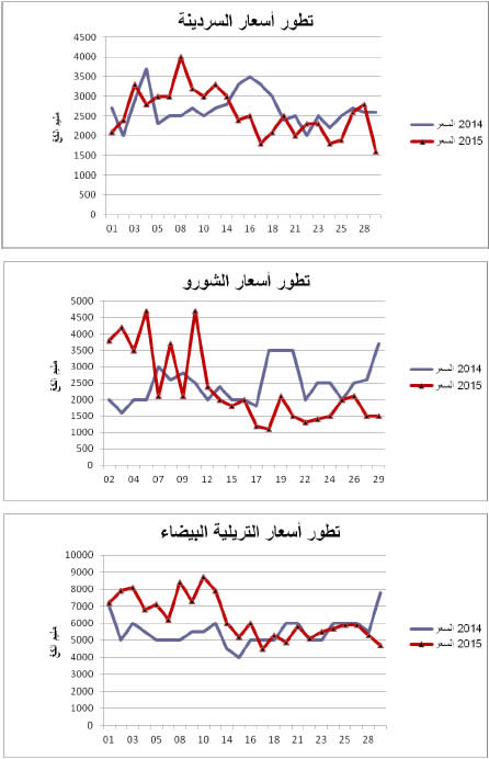 السردينة :زيادة نسبية في التزويد مقارنة بنفس الفترة من سنة 2014 ويقدر مؤشر الكميات بـ 128.
