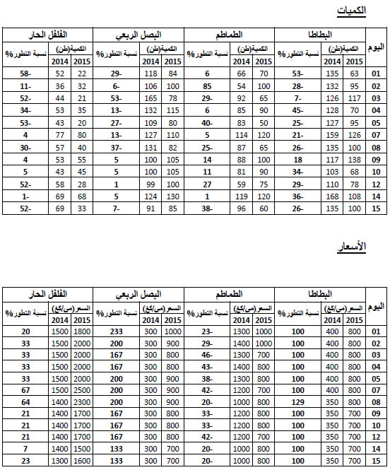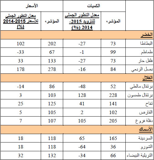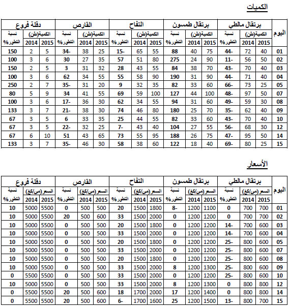 القارص: استقرار في التزويد مقارنة بنفس الفترة من سنة 2014 ويقدر مؤشر الكميات بـ 102.
