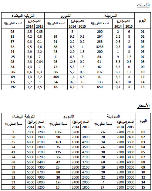 الشورو : تراجع هام في التزويد مقارنة بنفس الفترة من سنة 2014 ويقدر مؤشر الكميات بـ  36