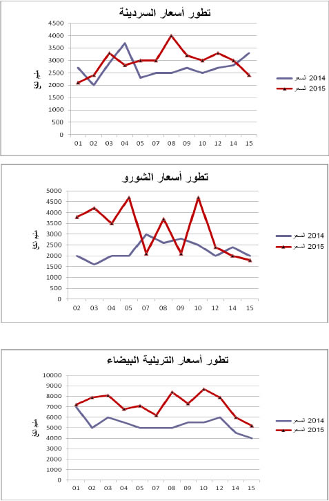 - زيادة في العرض بالنسبة للسردينة (+65%) مقابل تراجع بالنسبة للشورو (-64%)      و التريلية البيضاء(-34%).