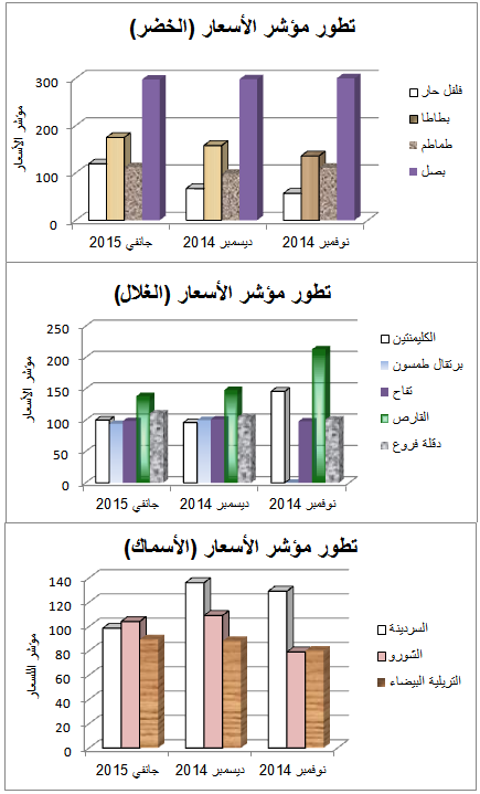 | جانفي 2015/ديسمبر 2014 | جانفي 2015/نوفمبر 2014 | ديسمبر 2014/نوفمبر 2014 | جانفي 2015 | ديسمبر 2014 | نوفمبر 2014 | |