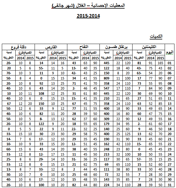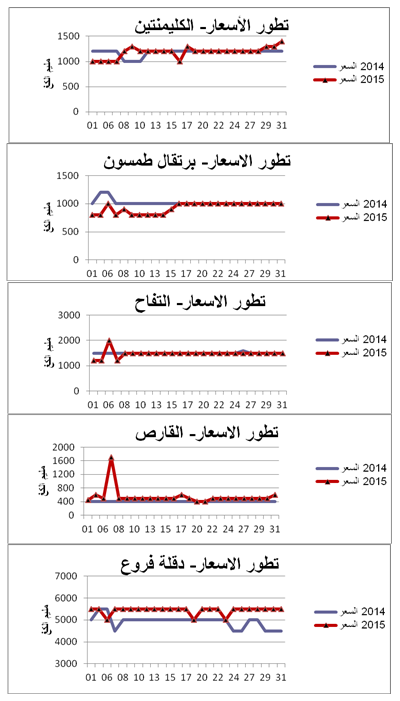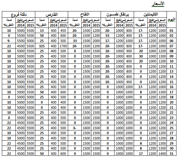 - الكليمنتين : استقرار في الأسعار مقارنة بنفس الفترة من سنة 2014.