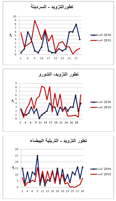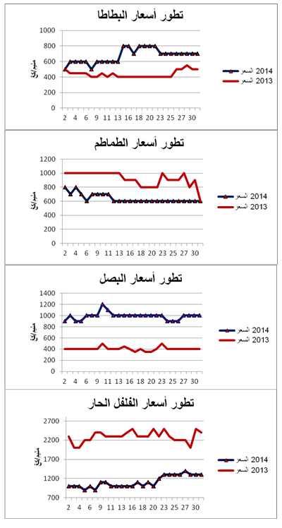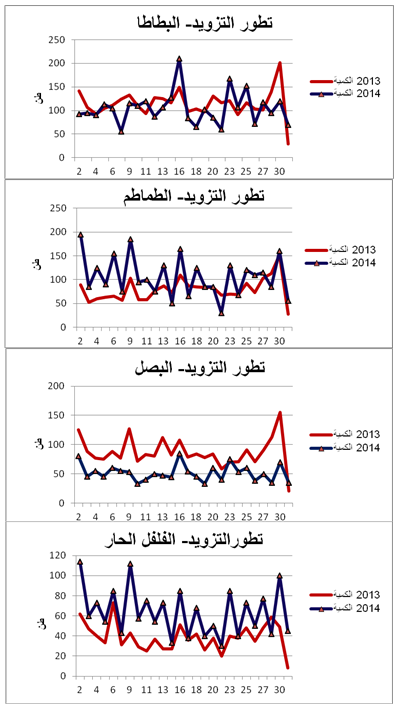 معدل التطور الجملي للأسعار 2013-2014 (%) معدل التطور الجملي للتزويد 2013-2014 (%)