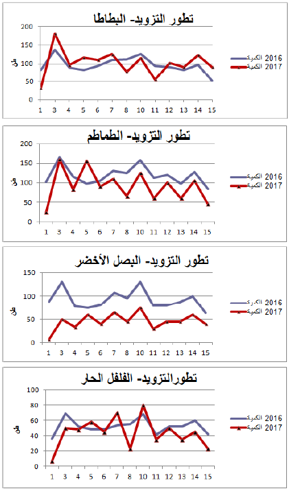 - تراجع في التزويد بالنسبة لأغلب أصناف الخضر ما عدى  البطاطا (5 %).