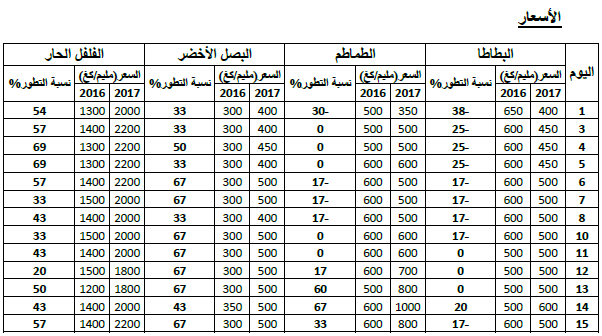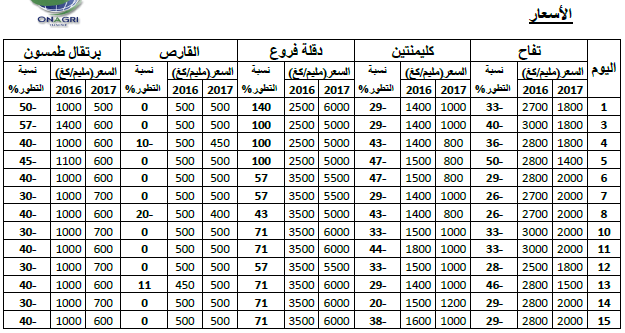 القارص: استقرار نسبي في الأسعار مقارنة بنفس الفترة من سنة 2016 ويقدر مؤشرالأسعار بـ99.