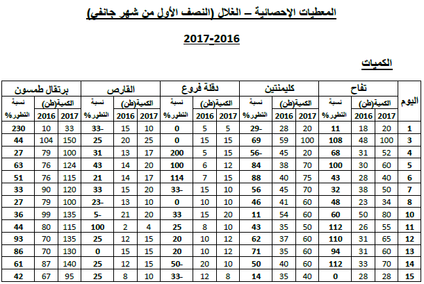 الكليمنتين: زيادة في التزويد مقارنة بنفس الفترة من سنة 2016 ويقدر مؤشر الكميات بـ 140