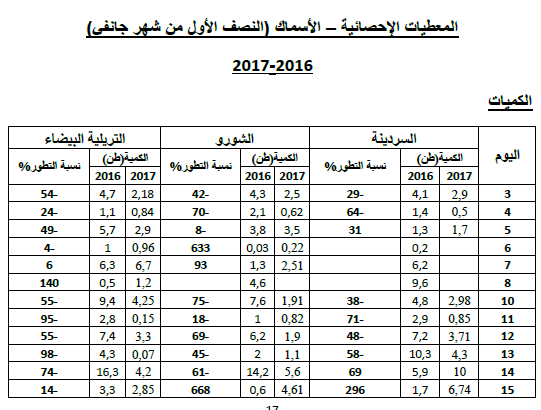 القارص: زيادة نسبية في التزويد مقارنة بنفس الفترة من سنة 2016 ويقدر مؤشر الكميات بـ  114
