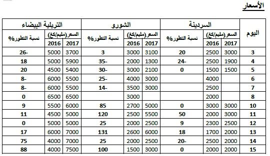 الشورو : ارتفاع نسبي في الأسعار مقارنة بنفس الفترة لسنة 2016 ويقدر مؤشرالأسعار بـ128.