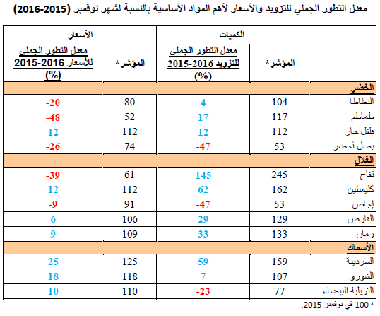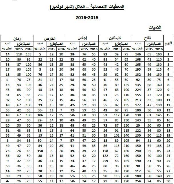القارص: زيادة في التزويد مقارنة بنفس الفترة من سنة 2015 ويقدر مؤشر الكميات بـ129.
