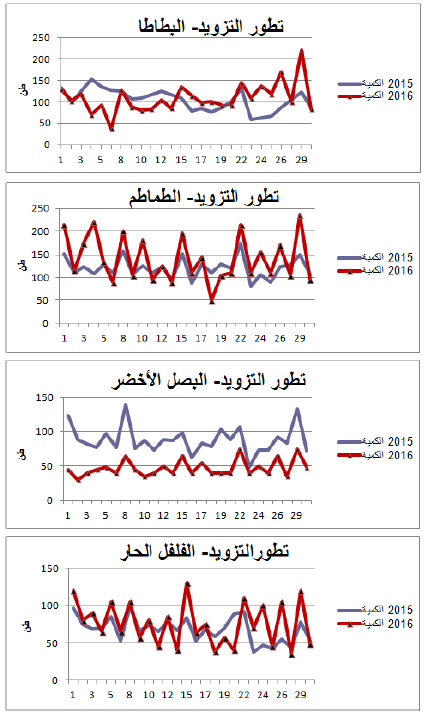 - زيادة نسبية في التزويد بالنسبة لأغلب أصناف الخضر ما عدى البصل الأخضر(-47%).