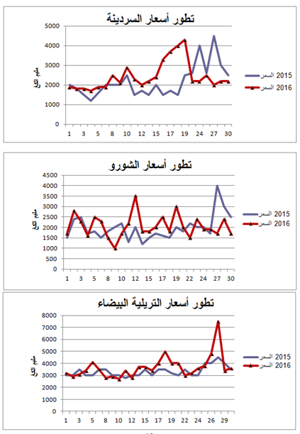 السردينة :زيادة في التزويد مقارنة بنفس الفترة من سنة 2015 ويقدر مؤشر الكميات بـ 159.