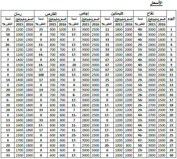 القارص: ارتفاع نسبي في الأسعار مقارنة بنفس الفترة من سنة 2015 ويقدر مؤشرالأسعار بـ106.