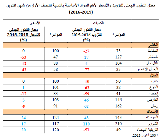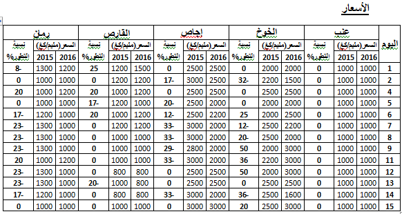 القارص: استقرار نسبي في الأسعار مقارنة بنفس الفترة من سنة 2015 ويقدر مؤشرالأسعار بـ103.