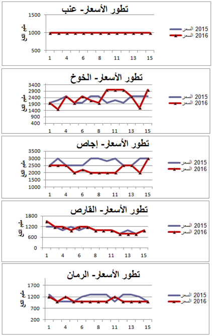 عنب : استقرار في الأسعار مقارنة بنفس الفترة من سنة 2015.