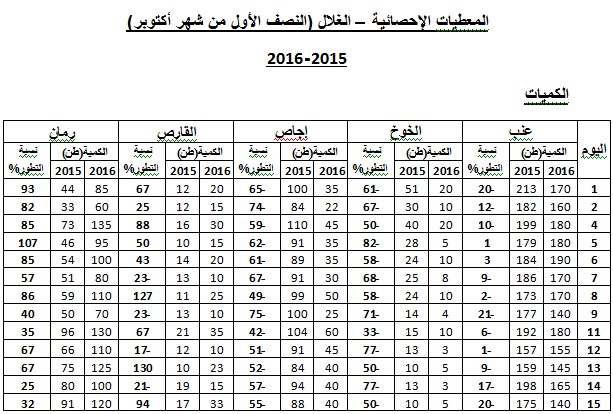 القارص: زيادة في التزويد مقارنة بنفس الفترة من سنة 2015 ويقدر مؤشر الكميات بـ  146