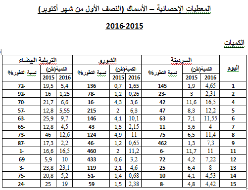 السردينة :زيادة في التزويد مقارنة بنفس الفترة من سنة 2015 ويقدر مؤشر الكميات بـ 143.