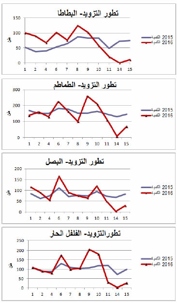 رسوم بيانية لتطور التزويد والأسعار لأهم المنتوجات