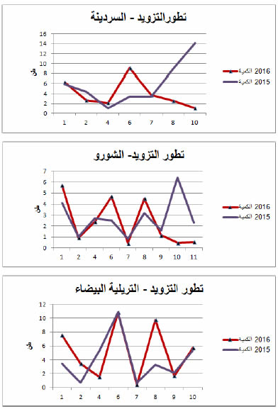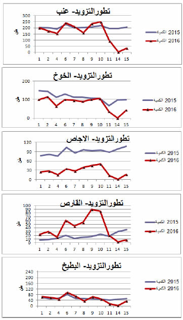 القارص: زيادة هامة في التزويد مقارنة بنفس الفترة من سنة 2015 ويقدر مؤشر الكميات بـ 218.