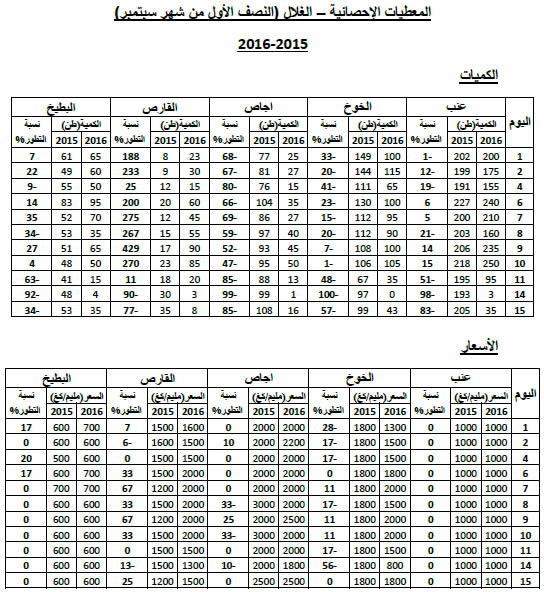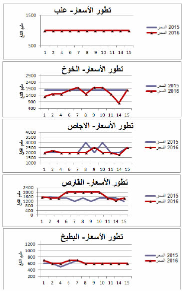 عنب : استقرار في الأسعار مقارنة بنفس الفترة من سنة 2015.