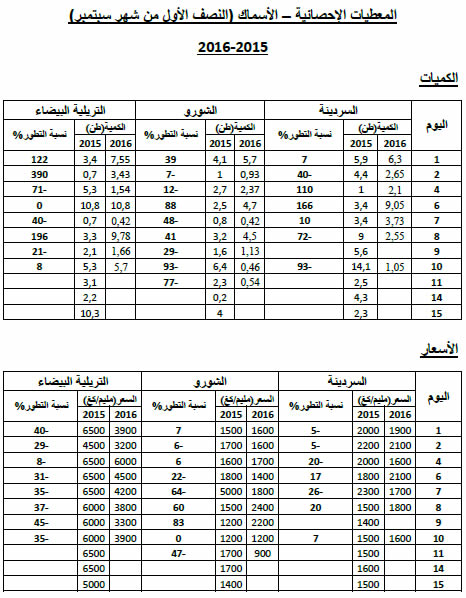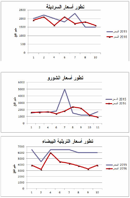 السردينة : استقرار نسبي في الأسعار مقارنة بنفس الفترة من سنة 2015 ويقدر مؤشرالأسعار بـ96.