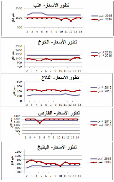 عنب : انخفاض نسبي في الأسعار مقارنة بنفس الفترة من سنة 2015 ويقدر مؤشرالأسعار بـ79.