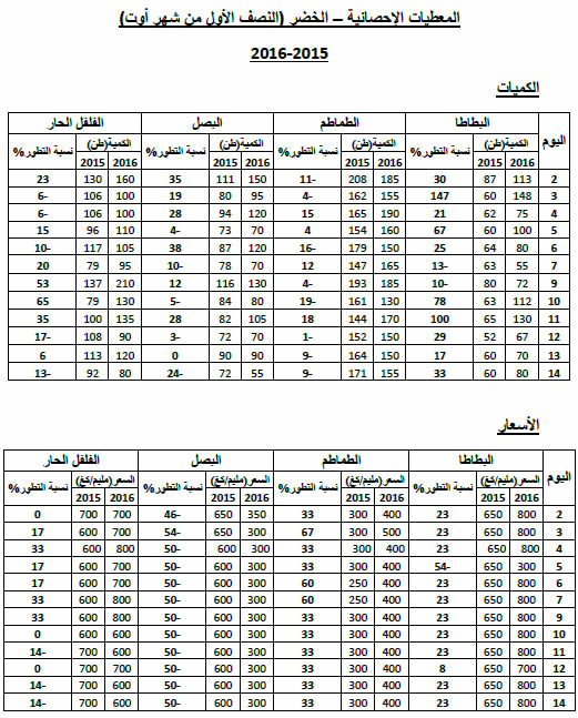 - زيادة في التزويد بالنسبة لأغلب أصناف الخضر.