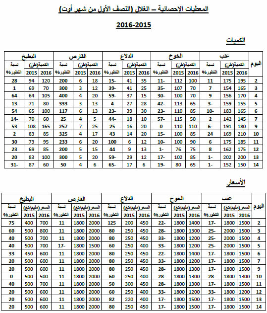 الدلاع: ارتفاع في الأسعار مقارنة بنفس الفترة لسنة 2015 ويقدر مؤشر الأسعار   بـ181.