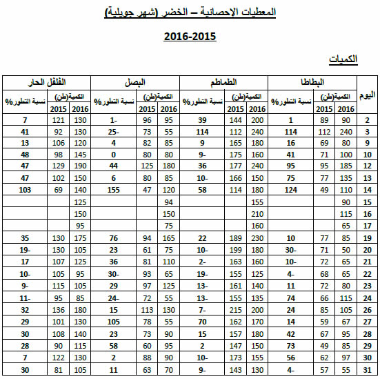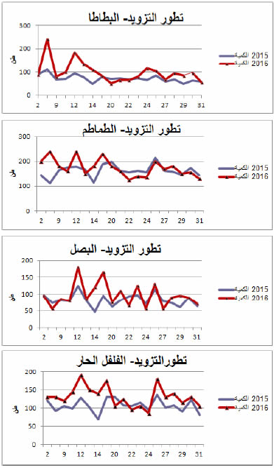 - زيادة في التزويد بالنسبة لأغلب أصناف الخضر.