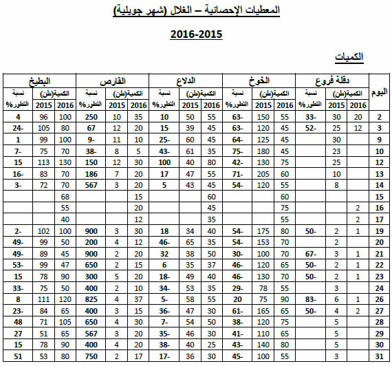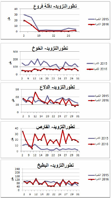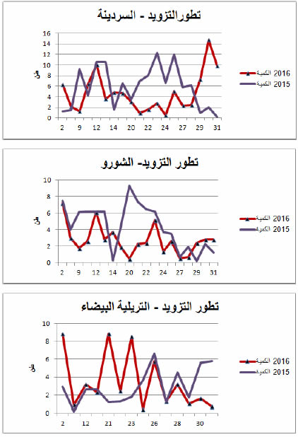 القارص: زيادة هامة في التزويد مقارنة بنفس الفترة من سنة 2015 ويقدر مؤشر الكميات بـ382.