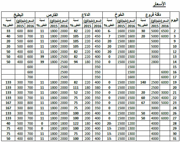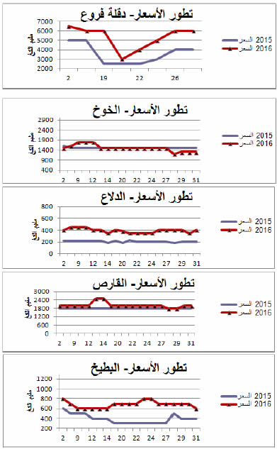 الدقلة فروع : ارتفاع في الأسعار مقارنة بنفس الفترة من سنة 2015 ويقدر مؤشرالأسعار بـ149.