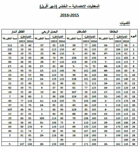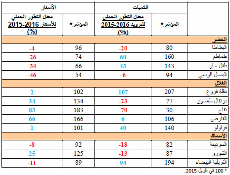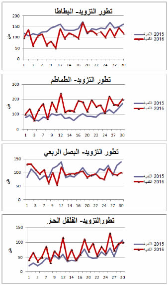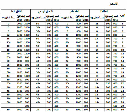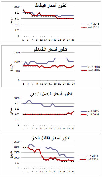 - انخفاض في الأسعار بالنسبة لأغلب أصناف الخضر.
