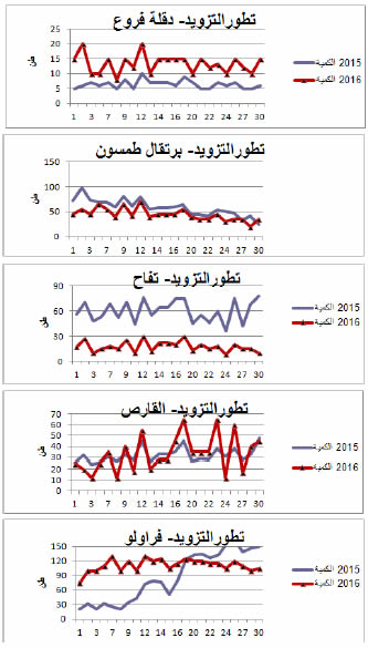 الفراولو: زيادة في التزويد مقارنة بنفس الفترة من سنة 2015 ويقدر مؤشر الكميات بـ140.