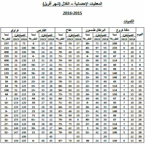 الدقلة فروع: زيادة في التزويد مقارنة بنفس الفترة من سنة 2015 ويقدر مؤشر الكميات بـ 207.