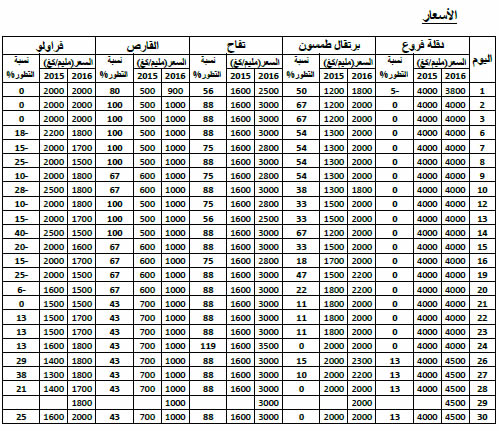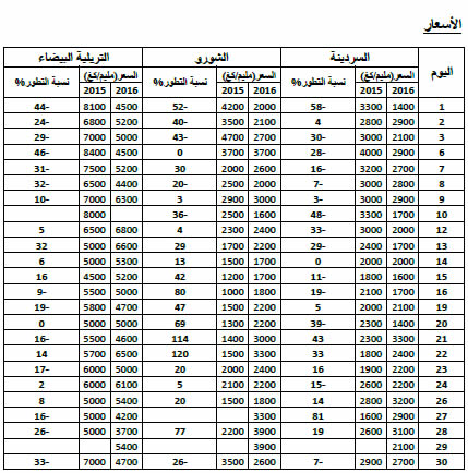 الشورو: ارتفاع نسبي في الأسعار مقارنة بنفس الفترة لسنة 2015 ويقدر مؤشرالأسعار بـ125.