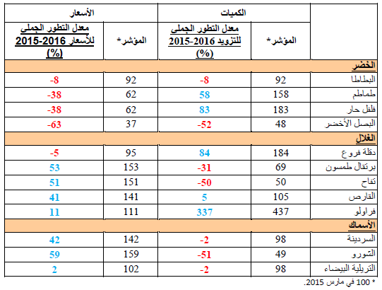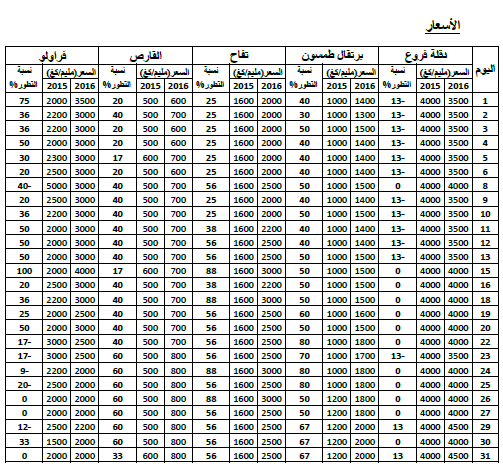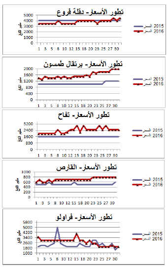 القارص: ارتفاع في الأسعار مقارنة بنفس الفترة من سنة 2015 ويقدر مؤشرالأسعار بـ141.