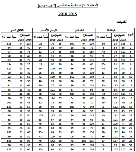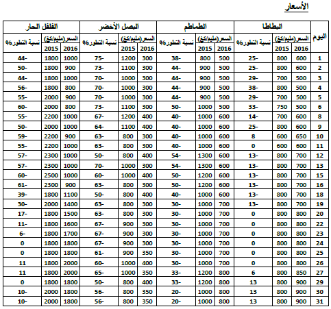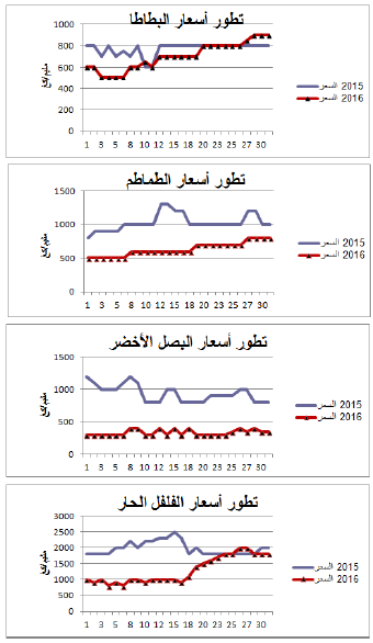- انخفاض في الأسعار بالنسبة لأغلب أصناف الخضر.