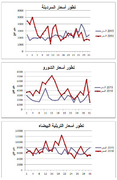 السردينة : ارتفاع في الأسعار مقارنة بنفس الفترة من سنة 2015 ويقدر مؤشرالأسعار بـ142.