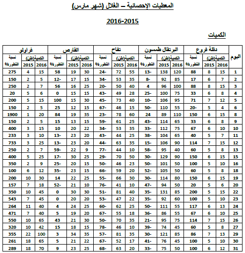 الدقلة فروع: زيادة في التزويد مقارنة بنفس الفترة من سنة 2015 ويقدر مؤشر الكميات بـ 184.