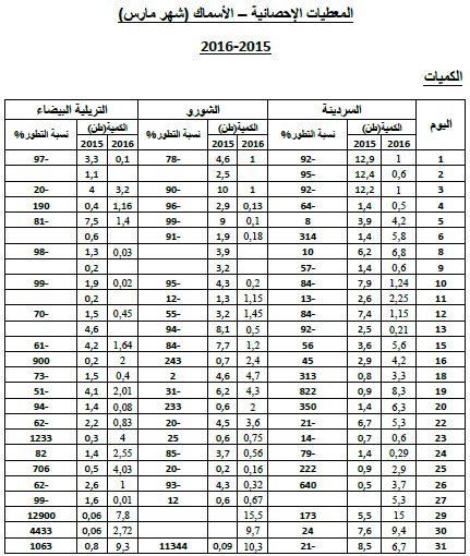 التريلية البيضاء: استقرار نسبيفي التزويد مقارنة بنفس الفترة من سنة 2015 ويقدر مؤشر الكميات بـ98.