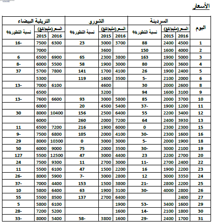 الشورو: ارتفاع في الأسعار مقارنة بنفس الفترة لسنة 2015 ويقدر مؤشرالأسعار بـ159.