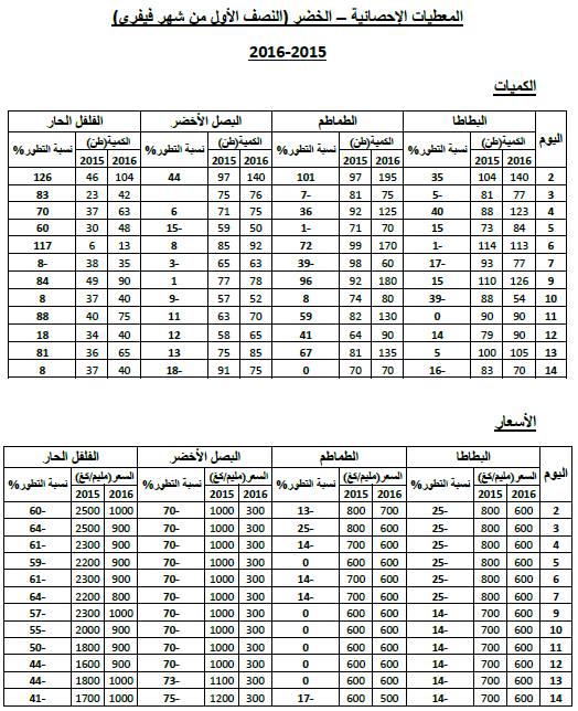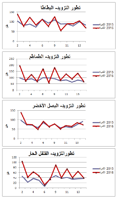 الفلفل الحار: زيادة في التزويد مقارنة بنفس الفترة من سنة 2015 ويقدر مؤشر الكميات بـ162.