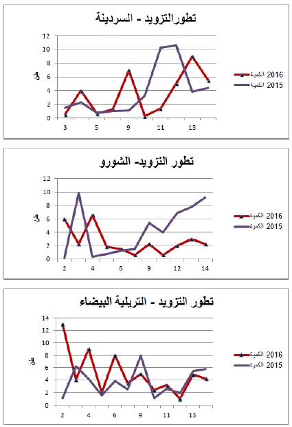 التريلية البيضاء: زيادة في التزويد مقارنة بنفس الفترة من سنة 2015 ويقدر مؤشر الكميات بـ142.