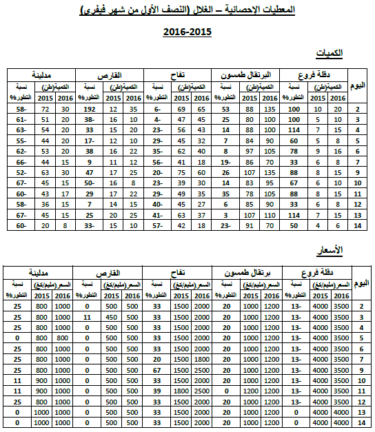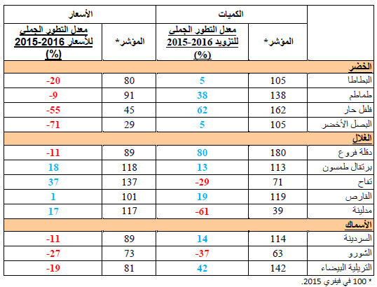 القارص: استقرار نسبي في الأسعار مقارنة بنفس الفترة من سنة 2015 ويقدر مؤشرالأسعار بـ101.