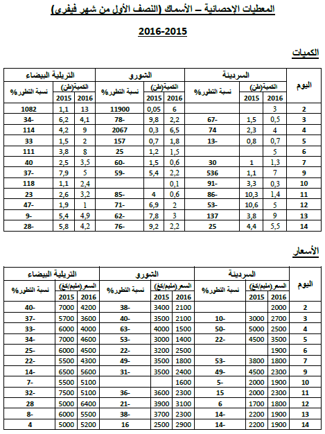 - انخفاض نسبي في الأسعار بالنسبة لأغلب أصناف الأسماك.