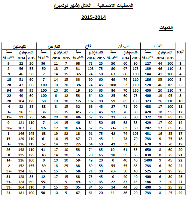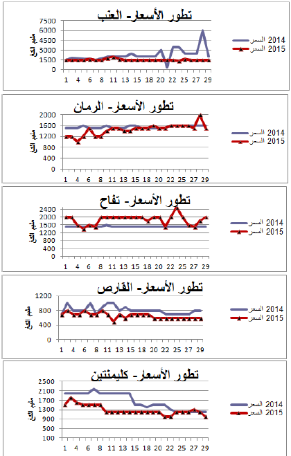 - انخفاض نسبي في الأسعار بالنسبة لأغلب أصناف الغلال ماعدى التفاح (+25%).